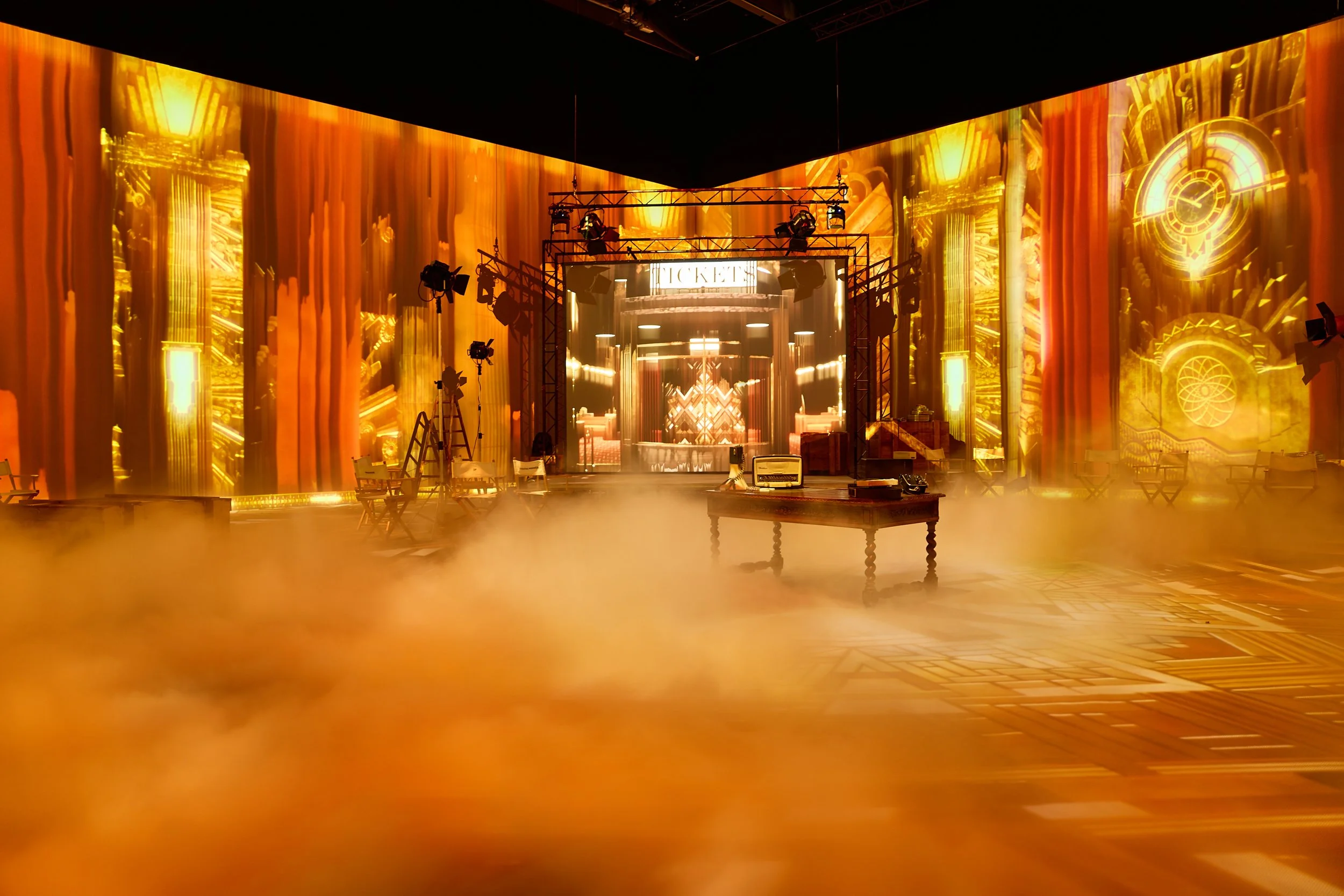 TSC delivered the production design: scenic, audiovisual, and technical, designed by flora&faunavisions. A reimagined 1950s film studio where every surface carries the narrative. Projection mapping. Original soundscapes. Light, sound, and scenography working together until the distance between visitor and icon disappears. Directed and creatively led by Mitch Sebastian.