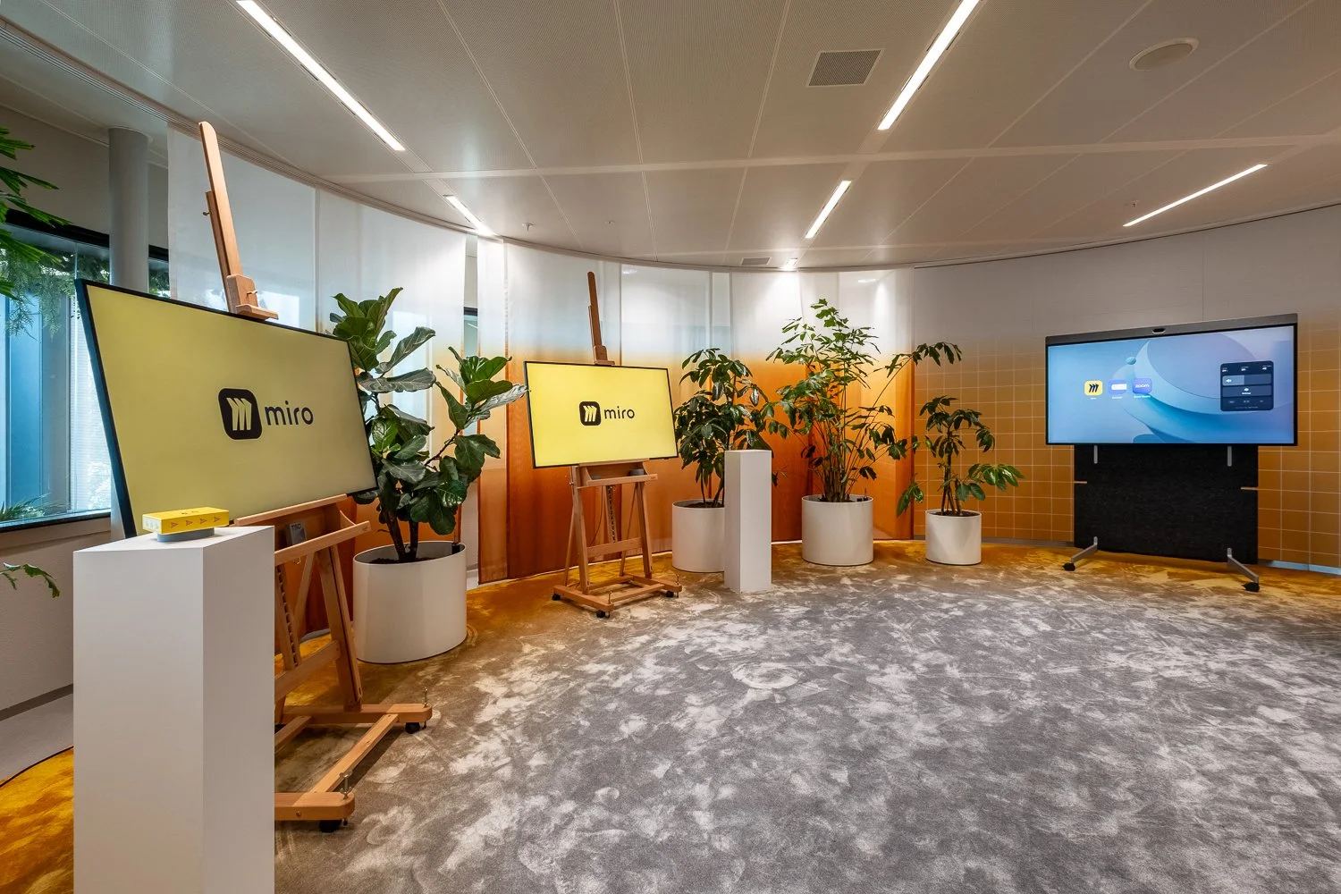 The Miro Discovery Center in Amsterdam is an immersive environment designed to showcase collaboration, creativity, and technology at its finest. Customers from around the world come to experience the space for a full day or more, engaging directly with Miro’s tools and philosophy.