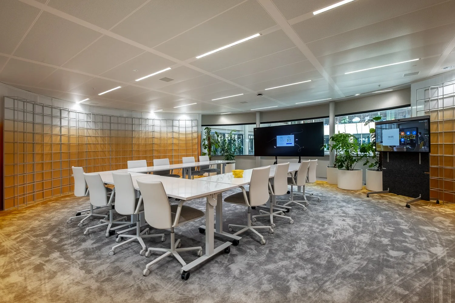 The Storytelling Suite was deployed across multiple touch points, from the reception area to the collaboration zones, enabling personalised messages, customer logos, and dynamic content updates in real time.