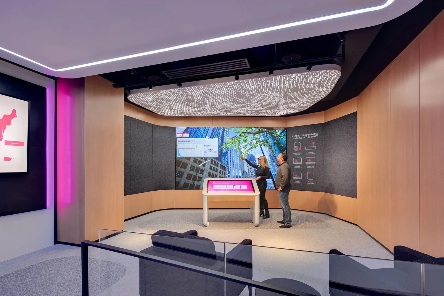 The Executive Briefing Centers now provide a consistent, high-impact experience across all locations, empowering T‑Mobile to engage clients in meaningful ways. Visitors benefit from interactive and personalised storytelling that communicates the capabilities and innovations of T‑Mobile for Business growing portfolio of services.
